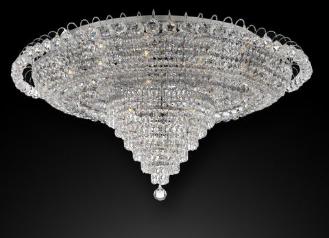 100% CRYSTAL CHANDELIER, this FLUSH Empire chandelier is characteristic of the grand chandeliers which decorated the finest Chateaux and Palaces across Europe and reflects a time of class and elegance which is sure to lend a special atmosphere in every home.Assembly Required.