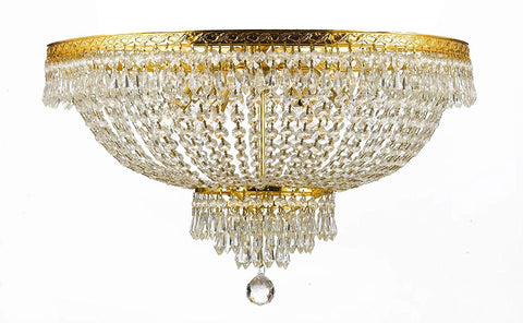 Set of 2-1 French Empire Crystal Chandelier Lighting H50" X W24" - Great for The Dining Room, Foyer, Living Room! and 1 French Empire Crystal Semi Flush Chandelier Lighting H18" X W24" - 1EA CG/870/15 + 1EA FLUSH/870/9 A500-