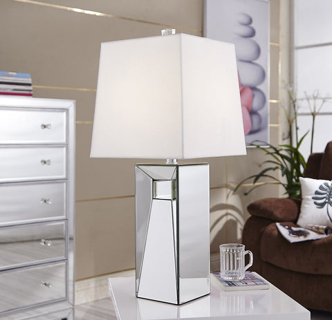 Make a striking statement in your home or office with this stunning contempo style clear table lamp. Featuring dozens of expertly cut, beveled edge mirror pieces, layered together to create a bold, yet elegant textured look, you can adorn any table top with this dazzling contemporary table lamp and be sure to catch people’s attention.